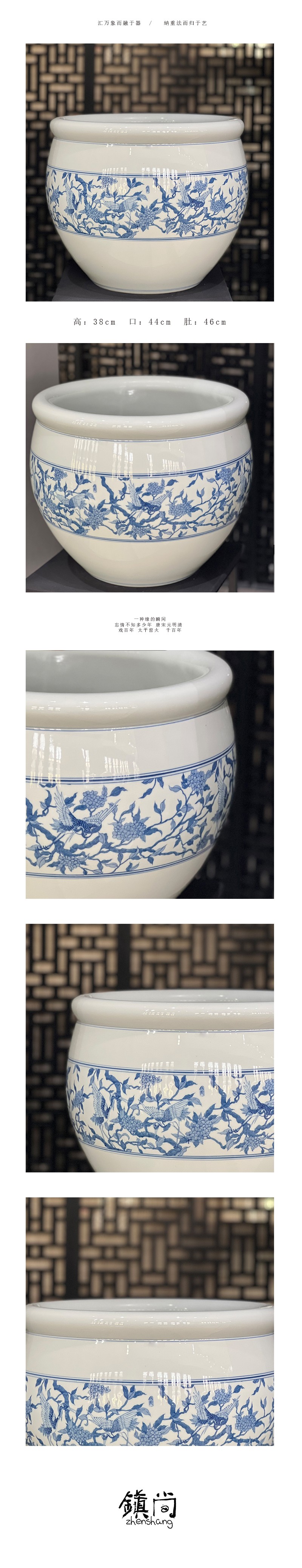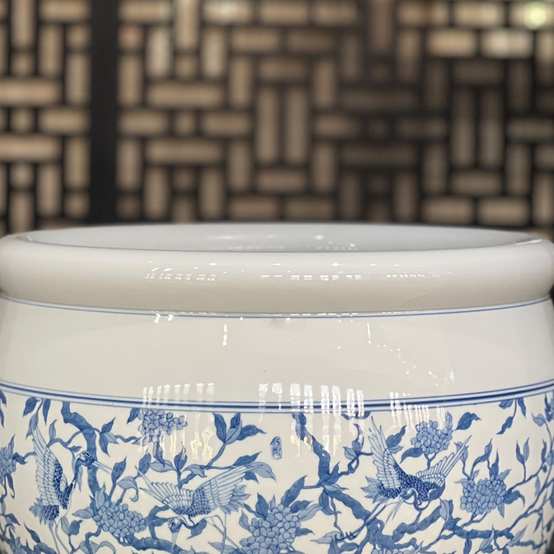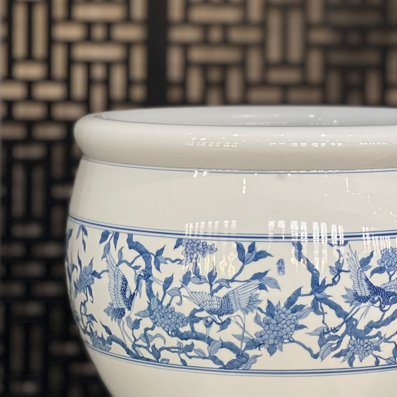 青花仙鹤小缸