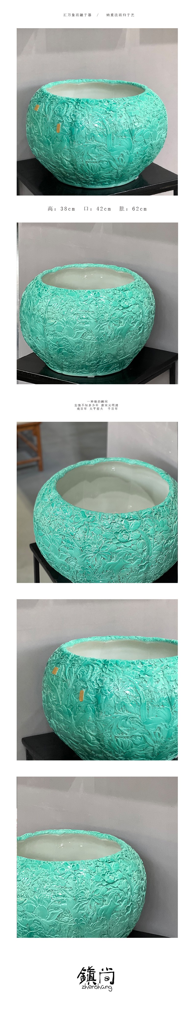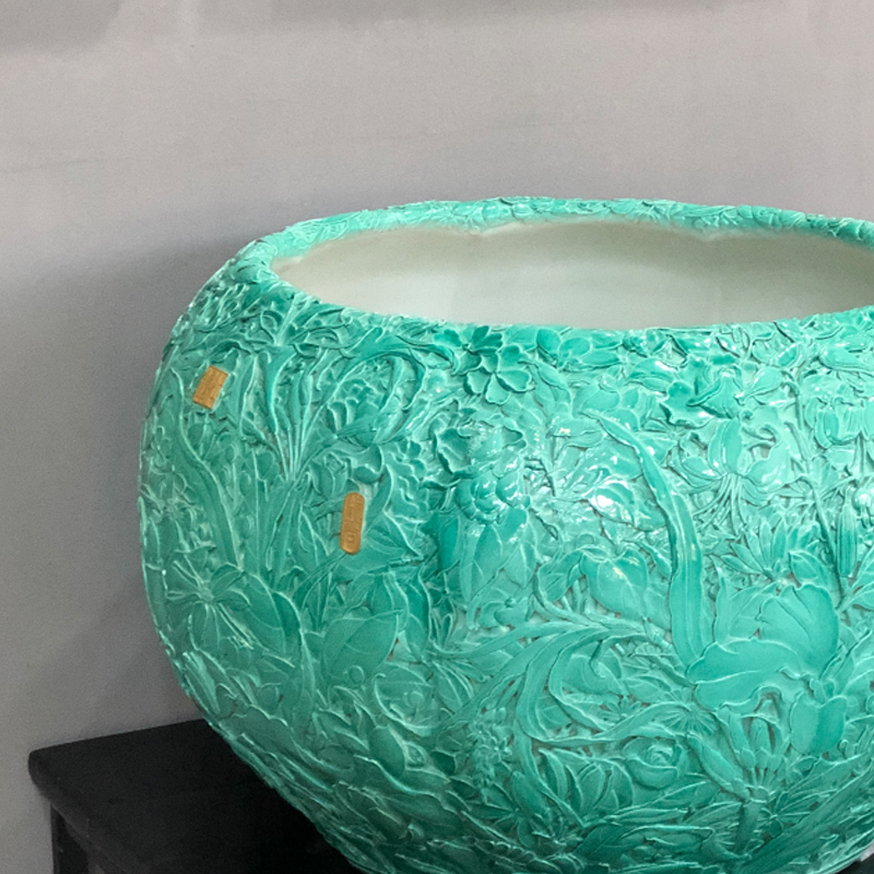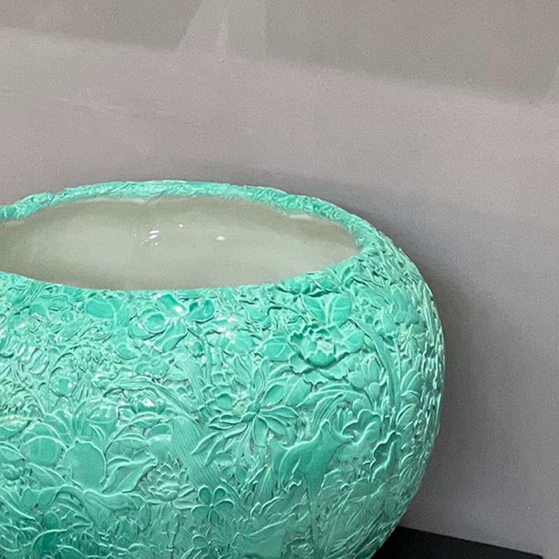松石绿万花雕刻缸
